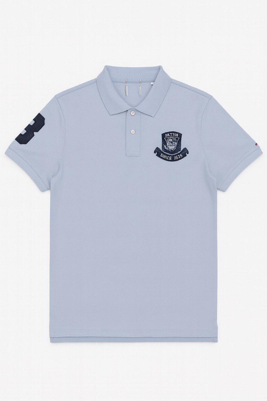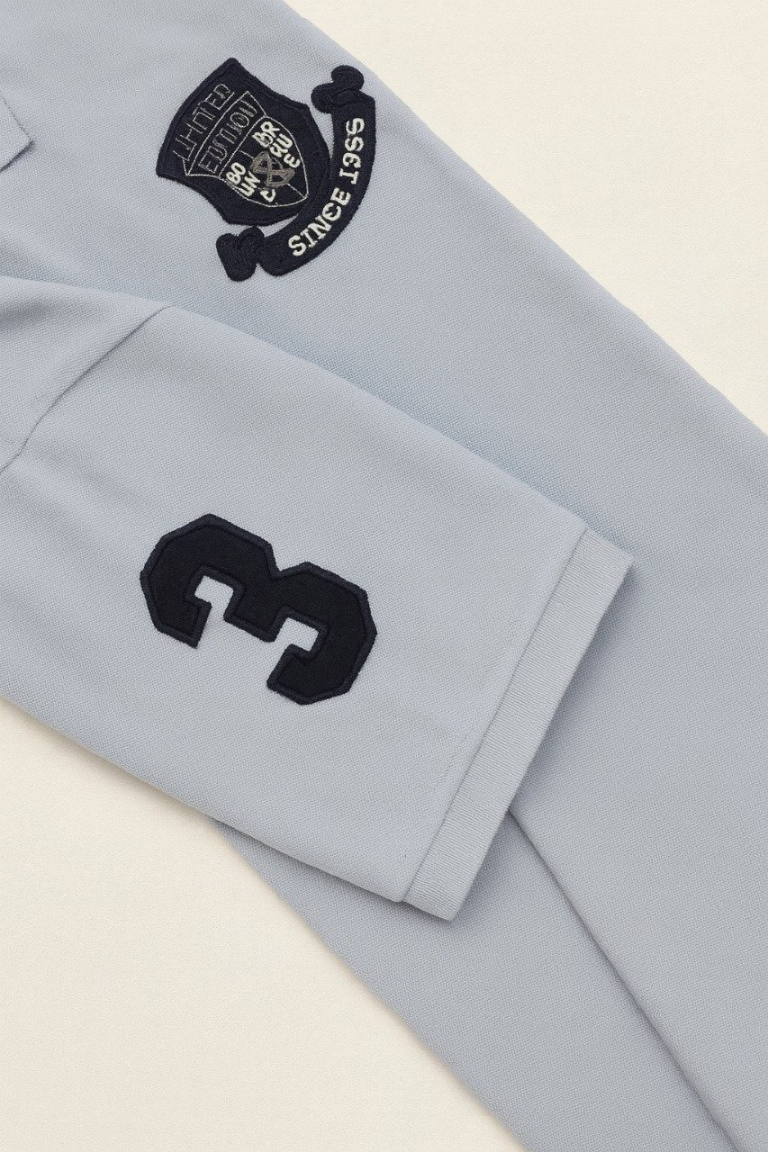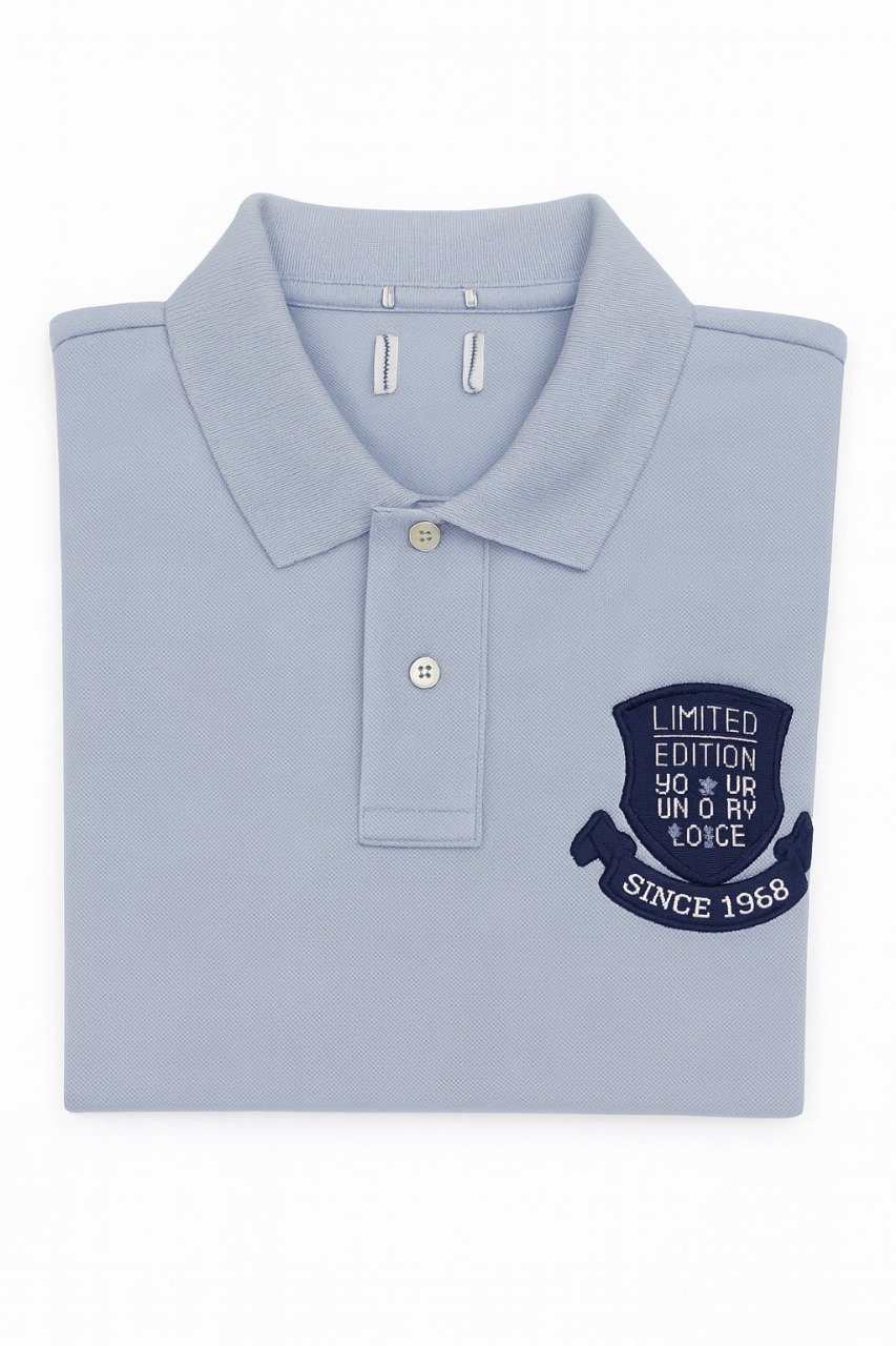 This light blue polo shirt blends sophistication with everyday comfort. Made from premium fabric, it showcases a detailed embroidered crest reading “Limited Edition Since 1968” on the chest. The classic two-button placket and neatly tailored collar make it perfect for casual and semi-formal occasions.