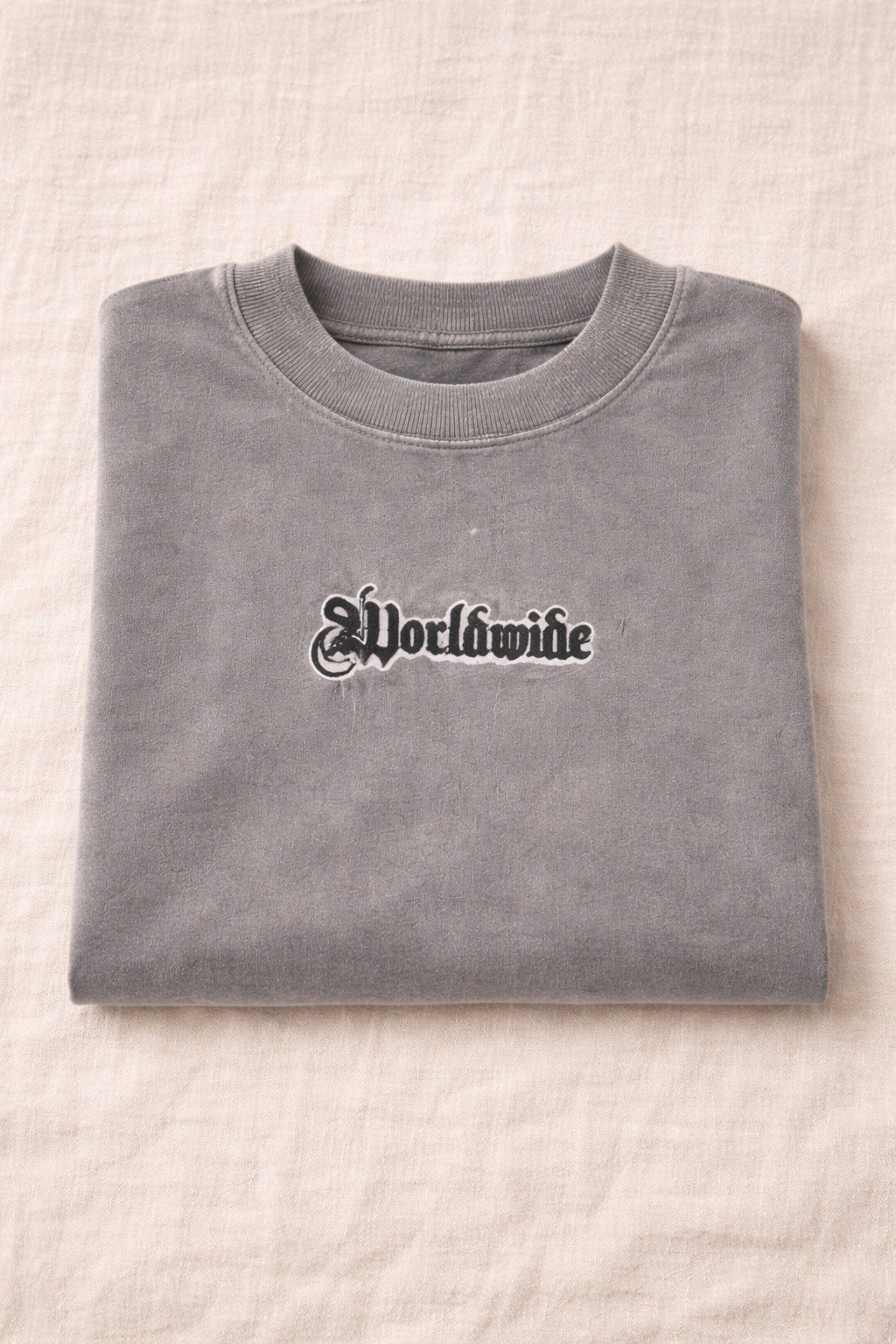 Stylish light grey oversized t-shirt featuring a bold “Worldwide” graphic printed on the chest. Designed with a relaxed fit, drop shoulders, and soft breathable fabric for everyday comfort. This modern streetwear tee pairs perfectly with casual outfits and is ideal for daily wear, summer fashion, and urban style looks.