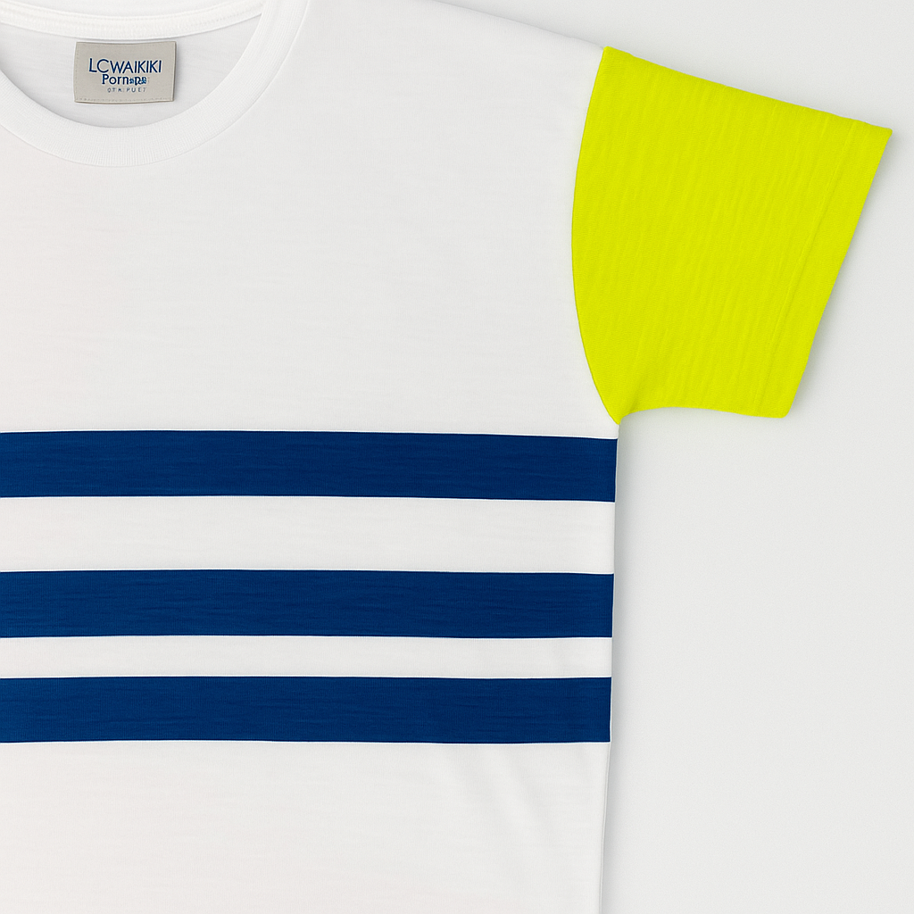 Inject a burst of energy into your wardrobe with the Unverment Paris Contrast Sleeve Stripe T-Shirt. This unique tee features a clean white base, elevated by bold navy blue horizontal stripes across the front and high-impact neon yellow sleeves. Designed for those who dare to stand out, this shirt blends urban streetwear with premium comfort. Whether for summer outings or casual hangouts, it’s a must-have piece for trendsetters.